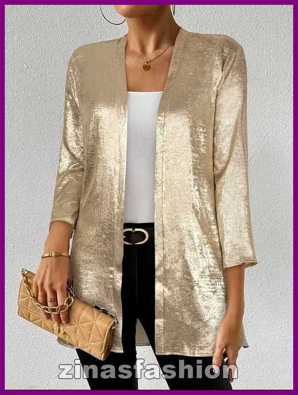 Dit glinster jasje is er in de kleur goud