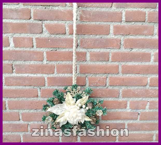 de kerst bloem is bevestigt aan een gevlochten koort.
